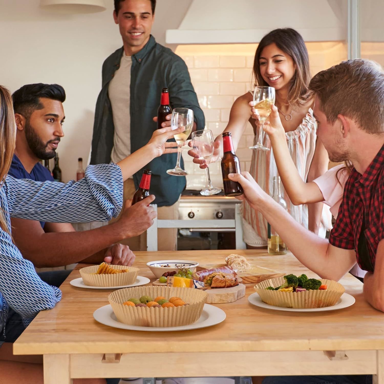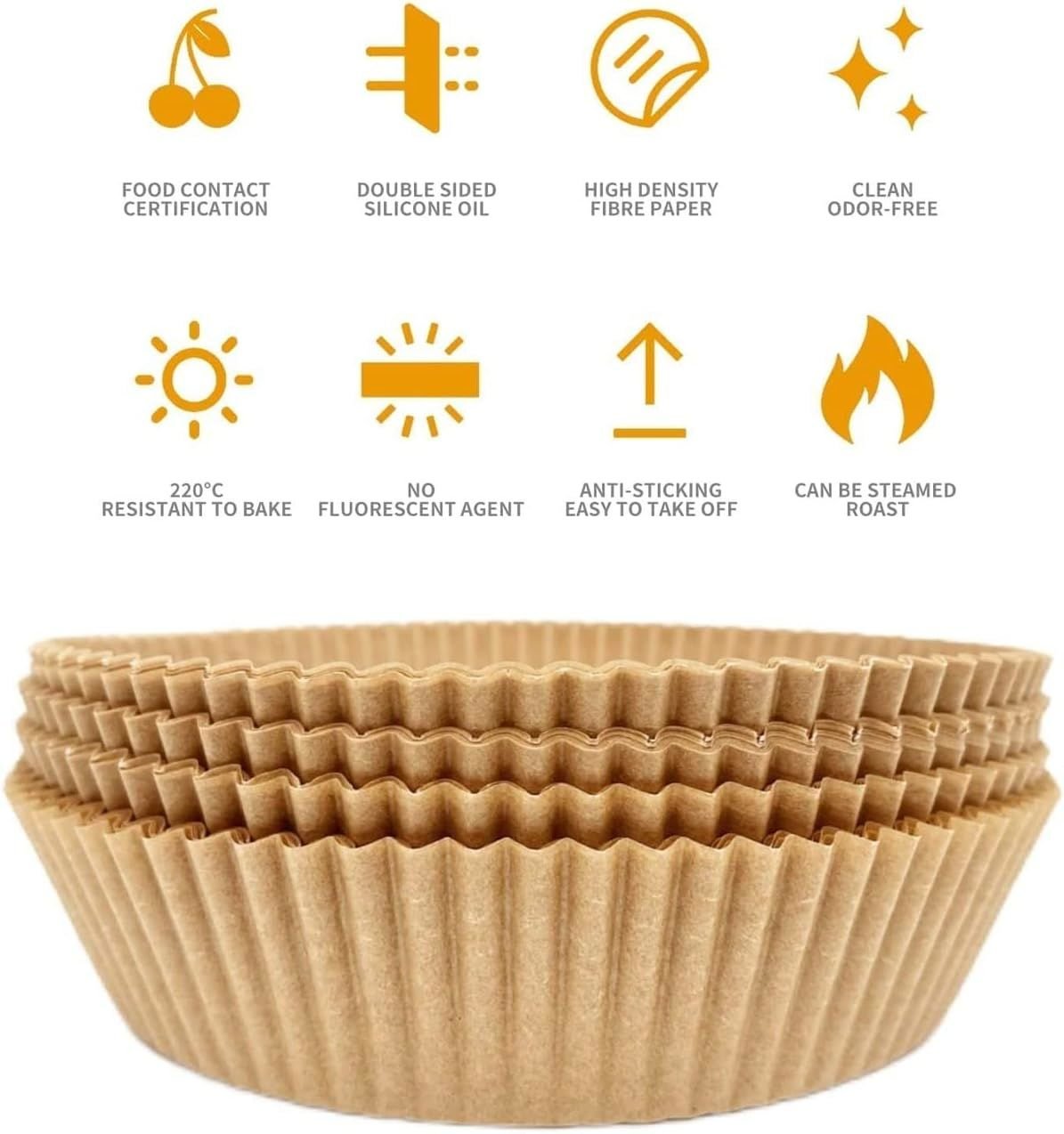 This set of 50 round 7.8 inch air fryer liners is an essential addition to your kitchenware collection. Made of non-toxic parchment paper, these baking utensils make cooking and cleaning up a breeze.Convenient:These disposable air fryer liners make clean-up a snap, saving you time and effort in the kitchen.Multipurpose:Ideal for use with your air fryer or as an oil-absorbing tray for other cooking needs, these parchment paper liners are versatile and practical.Round shape:The circular design of these baking utensils fits perfectly in round air fryers or other circular trays you may have in your kitchen.