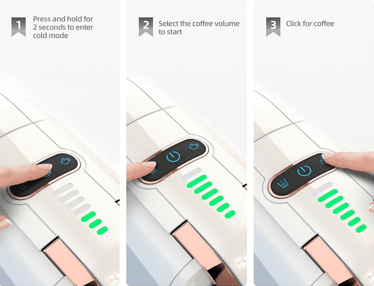 The capsule machine can work in hot brewing bubble and cold brewing mode. It supports a programmable brewing time, allowing you to customize the brewing method. Choose espresso (70 ml) or Lungo (110 ml). It only takes about 40 seconds to enjoy the coffee.