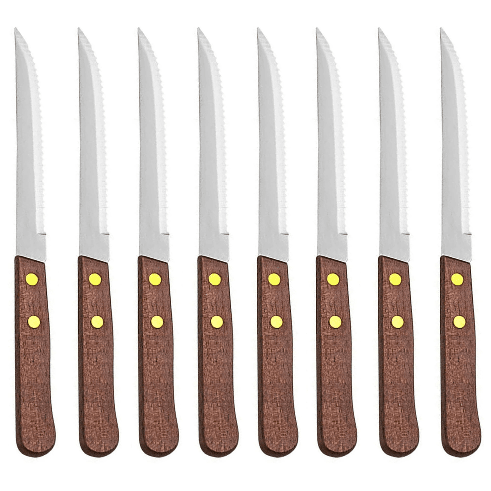 8 Pack Serrated Steak Knives Stainless Steel Knife Set Wooden Utensil Cutlery 8 Pack Serrated Steak Knives Stainless Steel Knife Set Wooden Utensil Cutlery