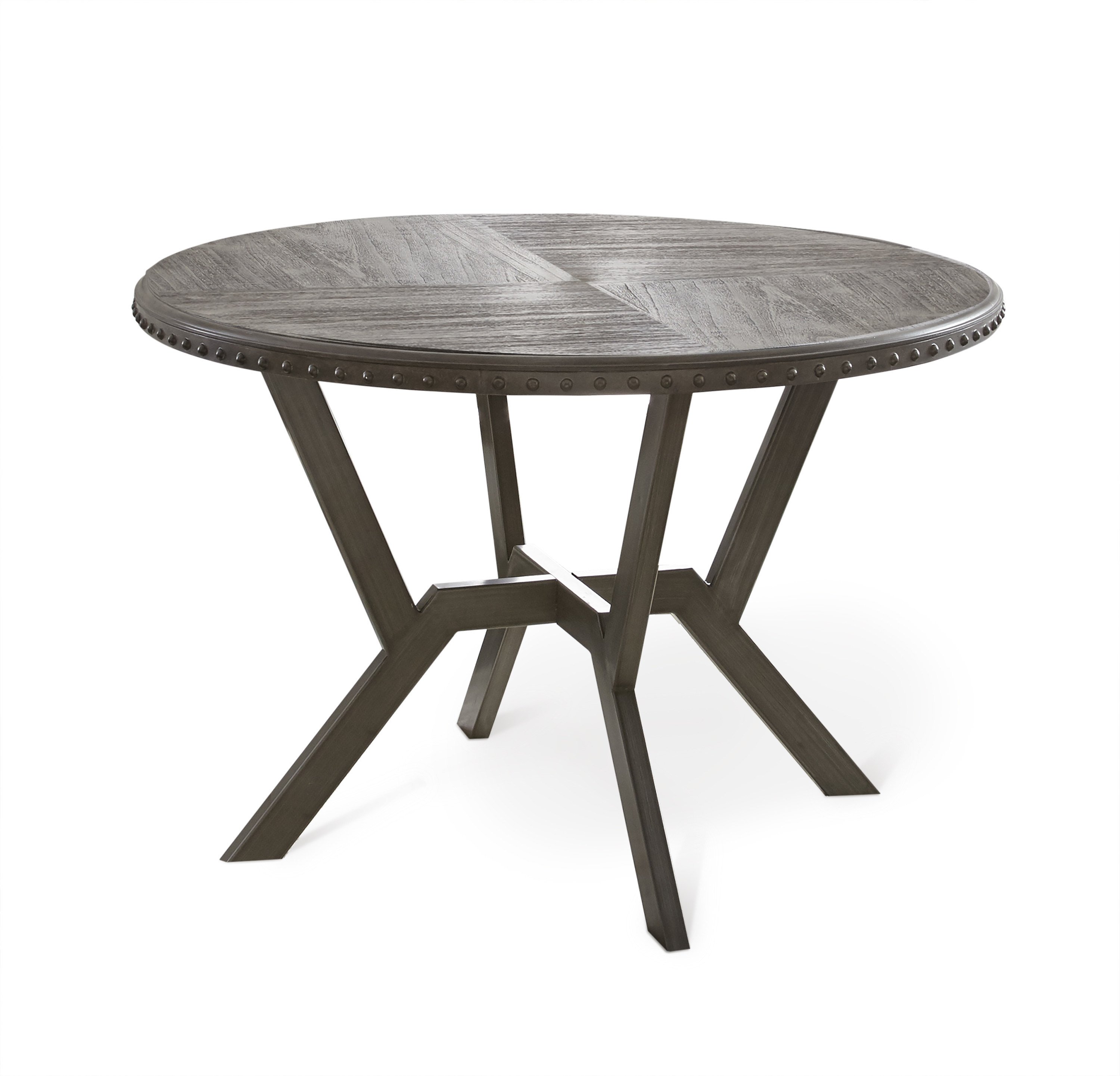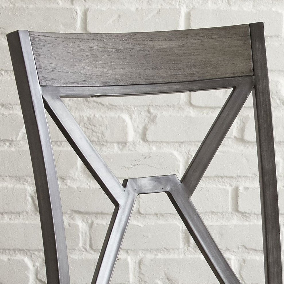 Constructed of paulownia veneers in a gray finish with gray metal and black hand brush accents
