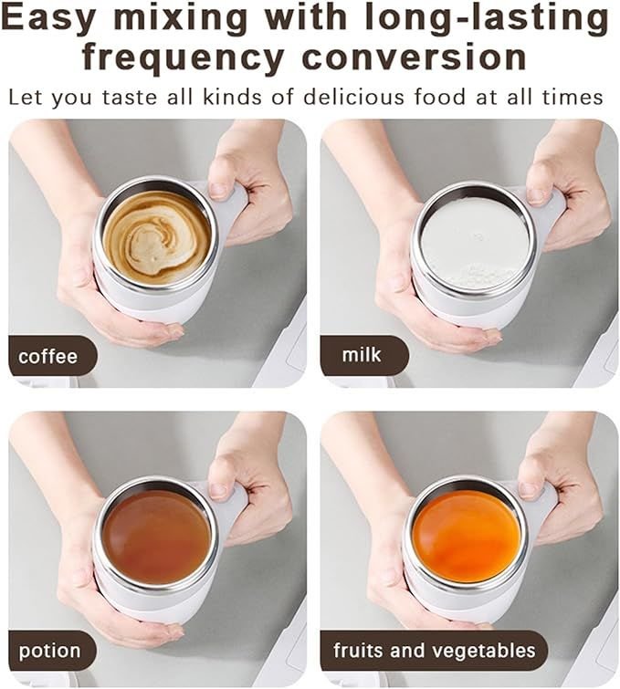 Automatic stirring function: the automatic stirring function can eliminate the traditional manual stirring and easily solve the stirring problem of coffee, tea and other drinks. Just press the button to get the evenly mixed drinksPortable Design: The product design is small and light, easy to carry and clean. It is convenient to use in offices, homes, the wild and other occasions. Suitable for travel, outdoor activities, work and daily useHigh quality materials: This product uses food grade stainless steel materials and PP plastic cups, which are safe, non-toxic, durable and not easy to be damaged. You can use it at ease and ensure a long service lifeMulti-functional use: this electric coffee cup can not only stir coffee, but also is suitable for mixing various drinks such as tea, hot chocolate, milkshake or egg liquid, which is very practicalEnergy saving and environmental protection: this automatic mixing cup uses battery to supply energy, which is superior to the traditional manual mixing cup without worrying about the problem of insufficient power. In addition, it can also be used as a simple portable cup without using the stirring function, meeting various needs and having strong practicability.