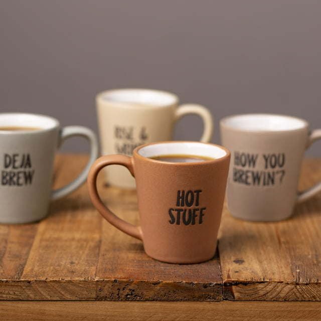 Home Essential 3 fl oz Stoneware assorted espresso mug set. Crafted out of Stoneware, Each cup features a simple design that is complemented by on-trend, matte finish color. These cups are the perfect way to get your morning started, whether you like it short, double or macchiato! Available in four colors and saying including ' Hot stuff', 'Deja Brew', ' Rise & Grind', 'How You Brewin’ ?'. Great for parties, catering, pool side, and entertaining. The cups can be used for more than just espresso, use for gelato, soups and more.Holds 3 ozSold IndividuallyEach mug has a saying- Hot Stuff, Rise & Grind, How You Brewing, and Deja BrewColors: Multi