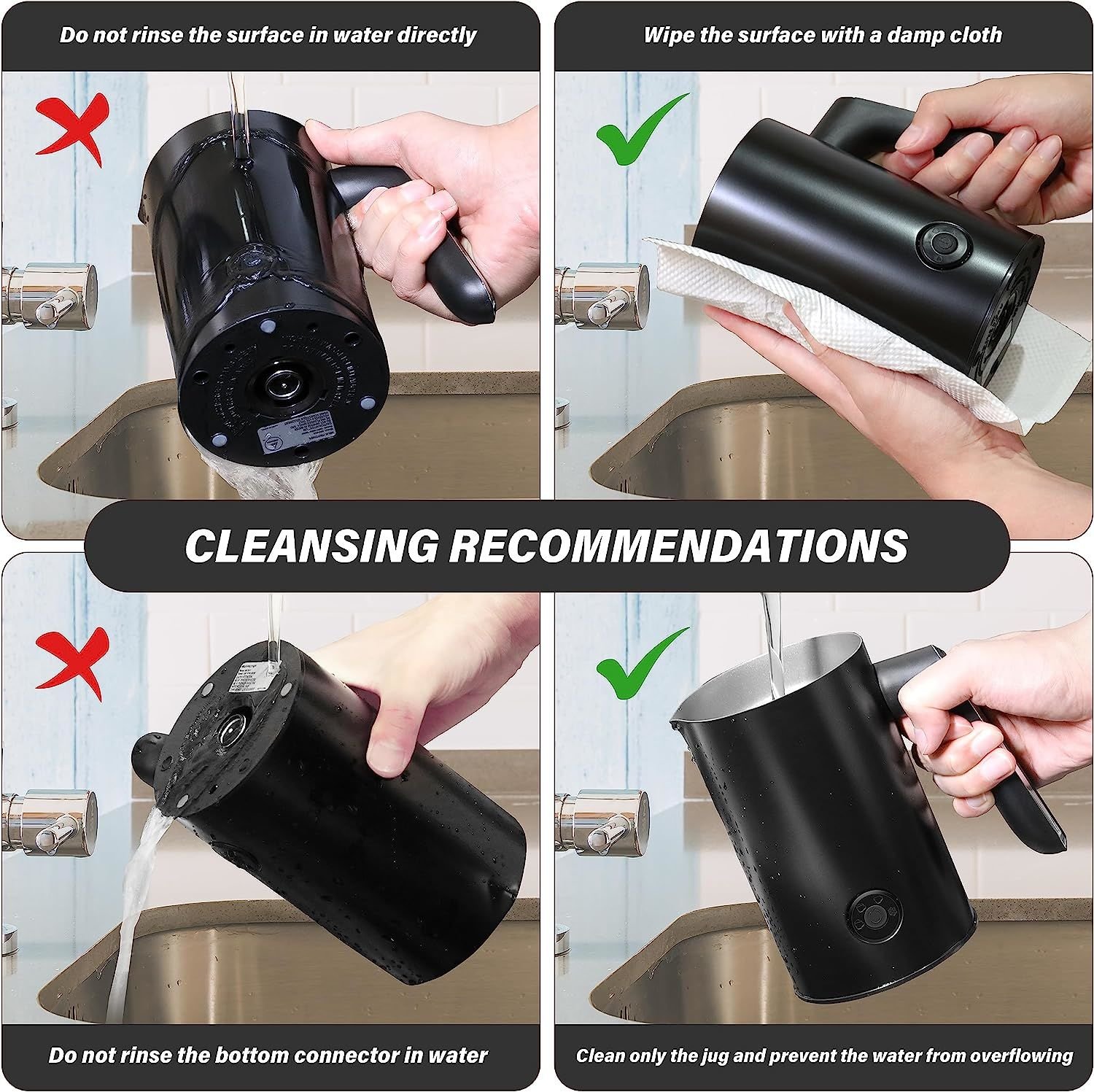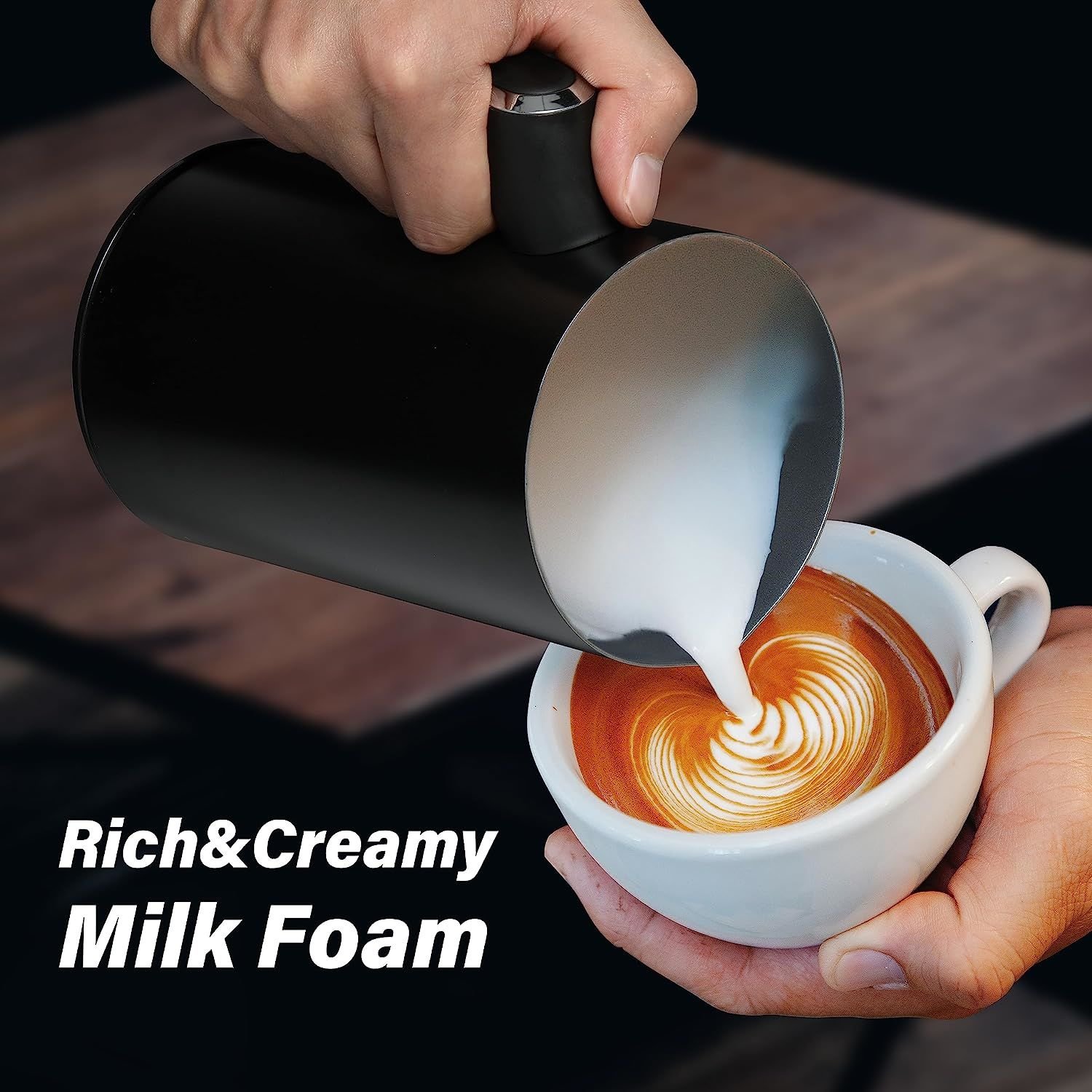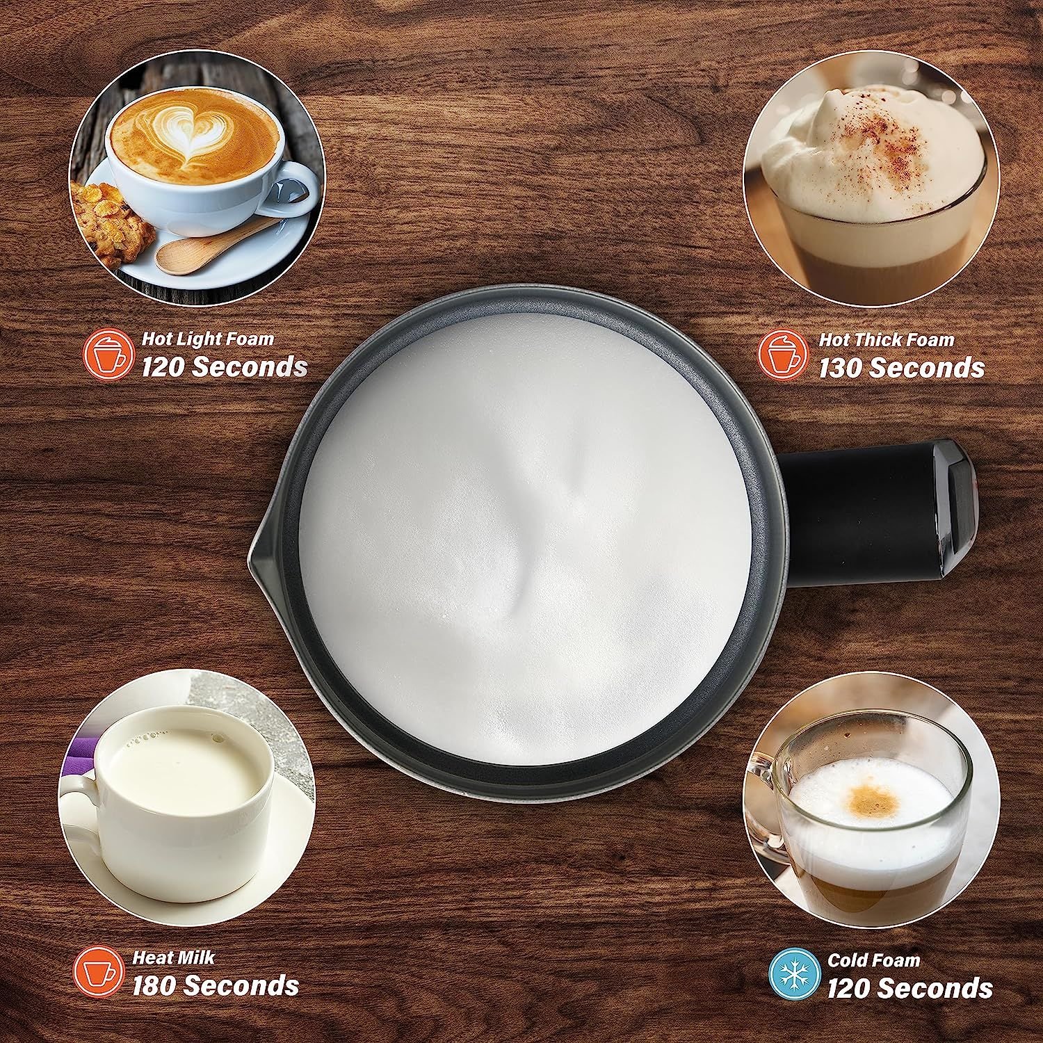 Capacity: Milk heater can heat up to 240ml/8.12oz milk for delicious latte or chocolate milk, or froth up to 115ml/4oz foam for cappuccino or macchiato at a time, which is perfect for treating your family and friends