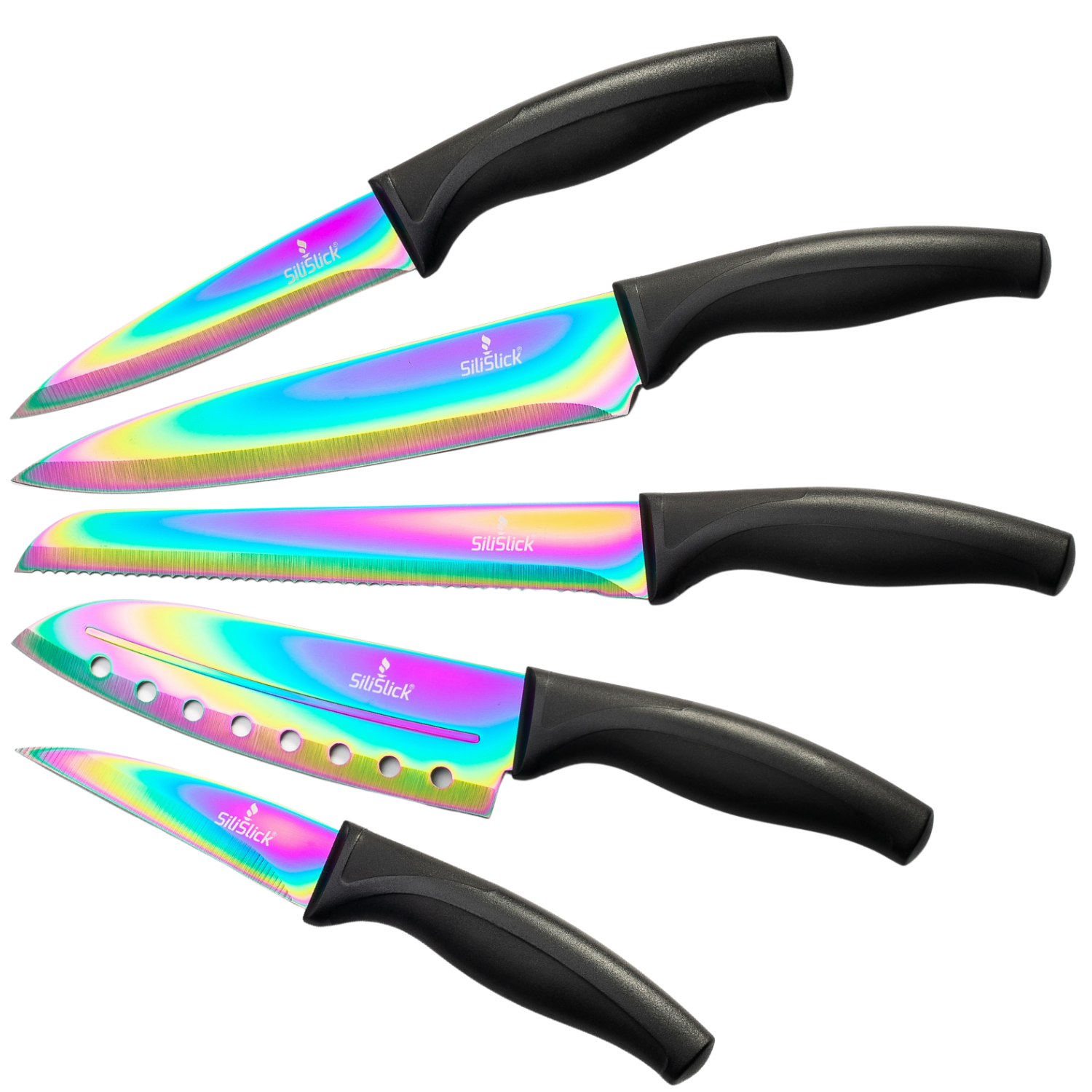 SiliSlick Kitchen Knife Set Titanium Coated Sharp Stainless Steel Rainbow Blades in its Own Sheath SiliSlick Kitchen Knife Set Titanium Coated Sharp Stainless Steel Rainbow Blades in its Own Sheath SiliSlick Kitchen Knife Set Titanium Coated Sharp Stainless Steel Rainbow Blades in its Own Sheath