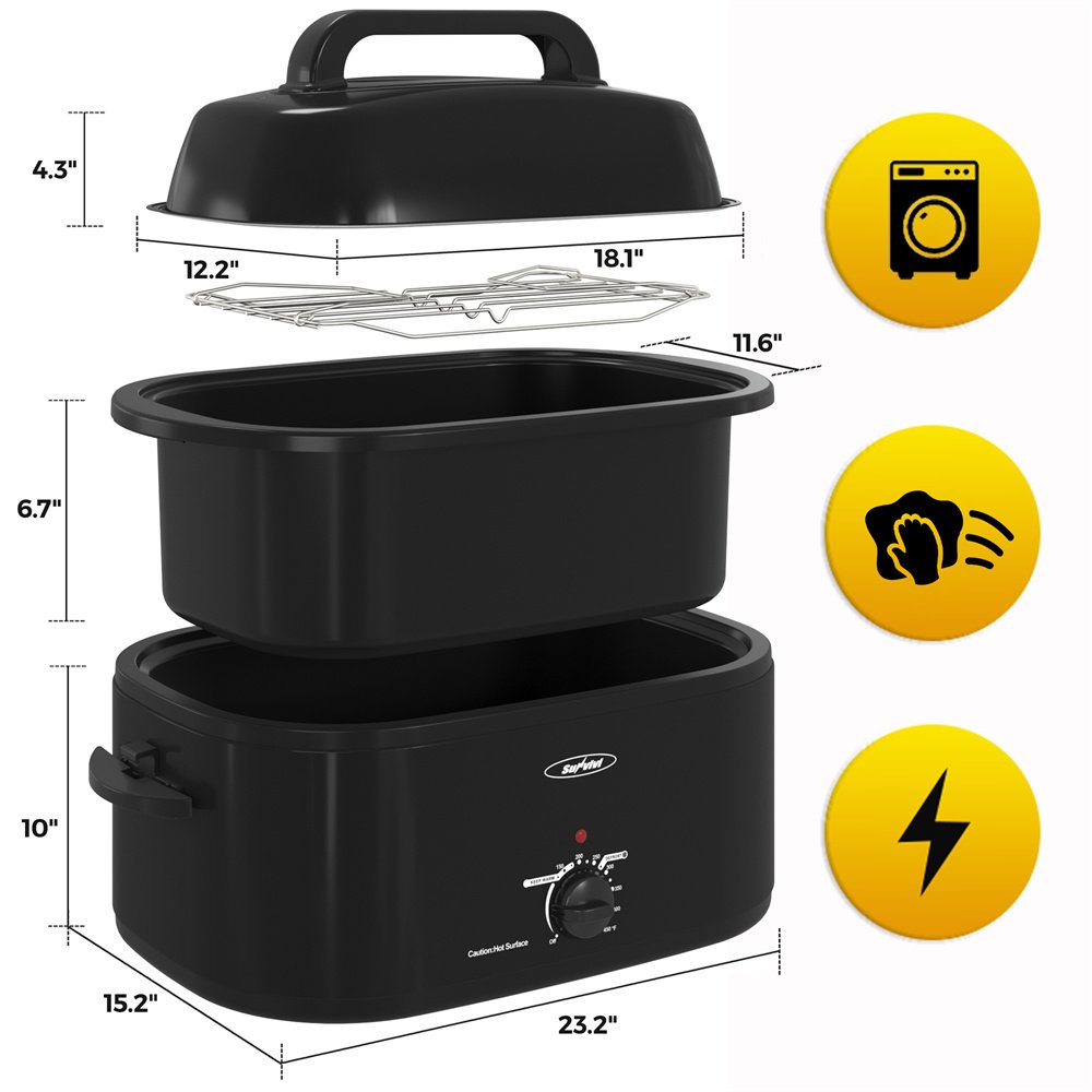Product Size:The spacious capacity of 22 quarts accommodates turkeys weighing 26 lbs, for holiday gatherings, large family meals, or any occasion that requires cooking large amounts of food.