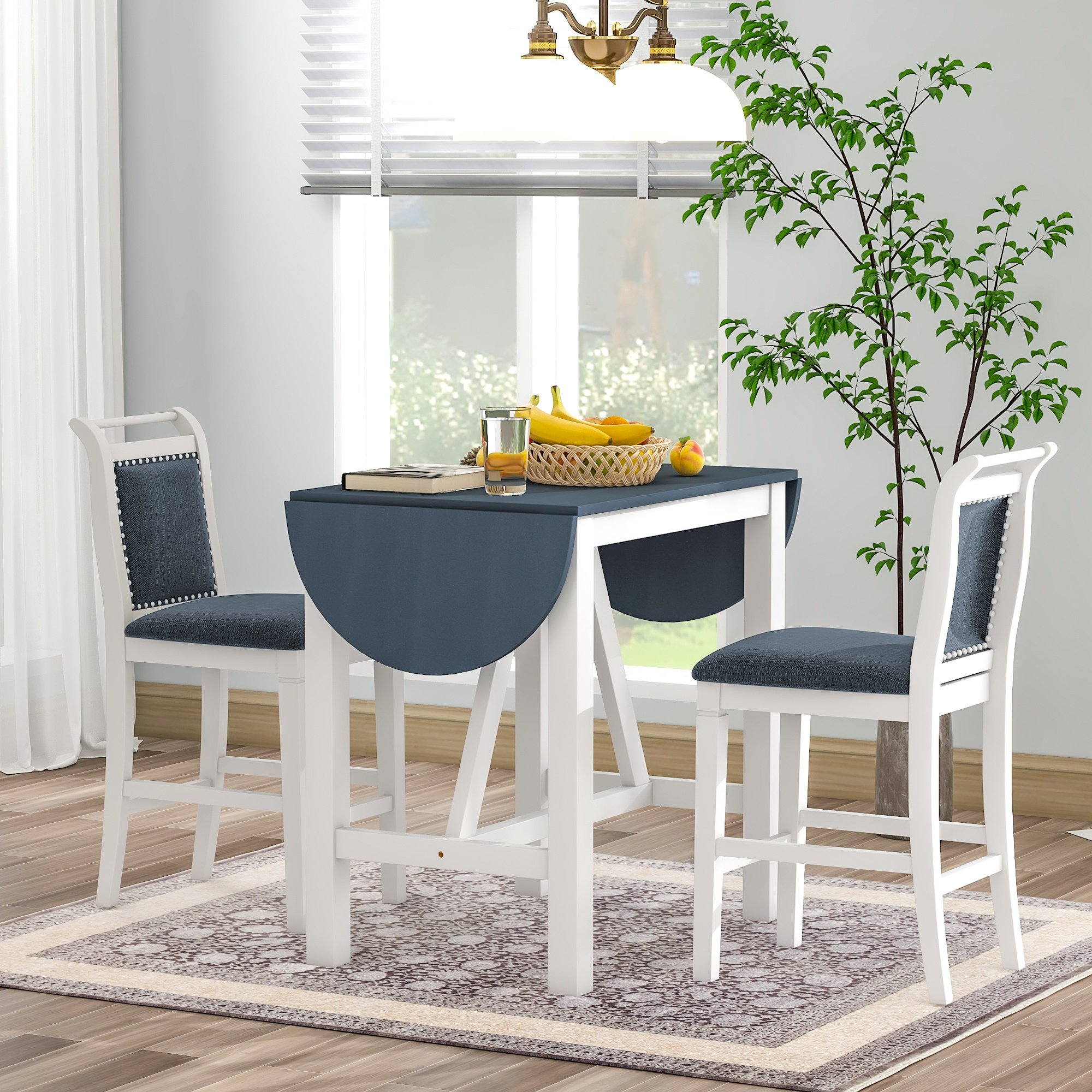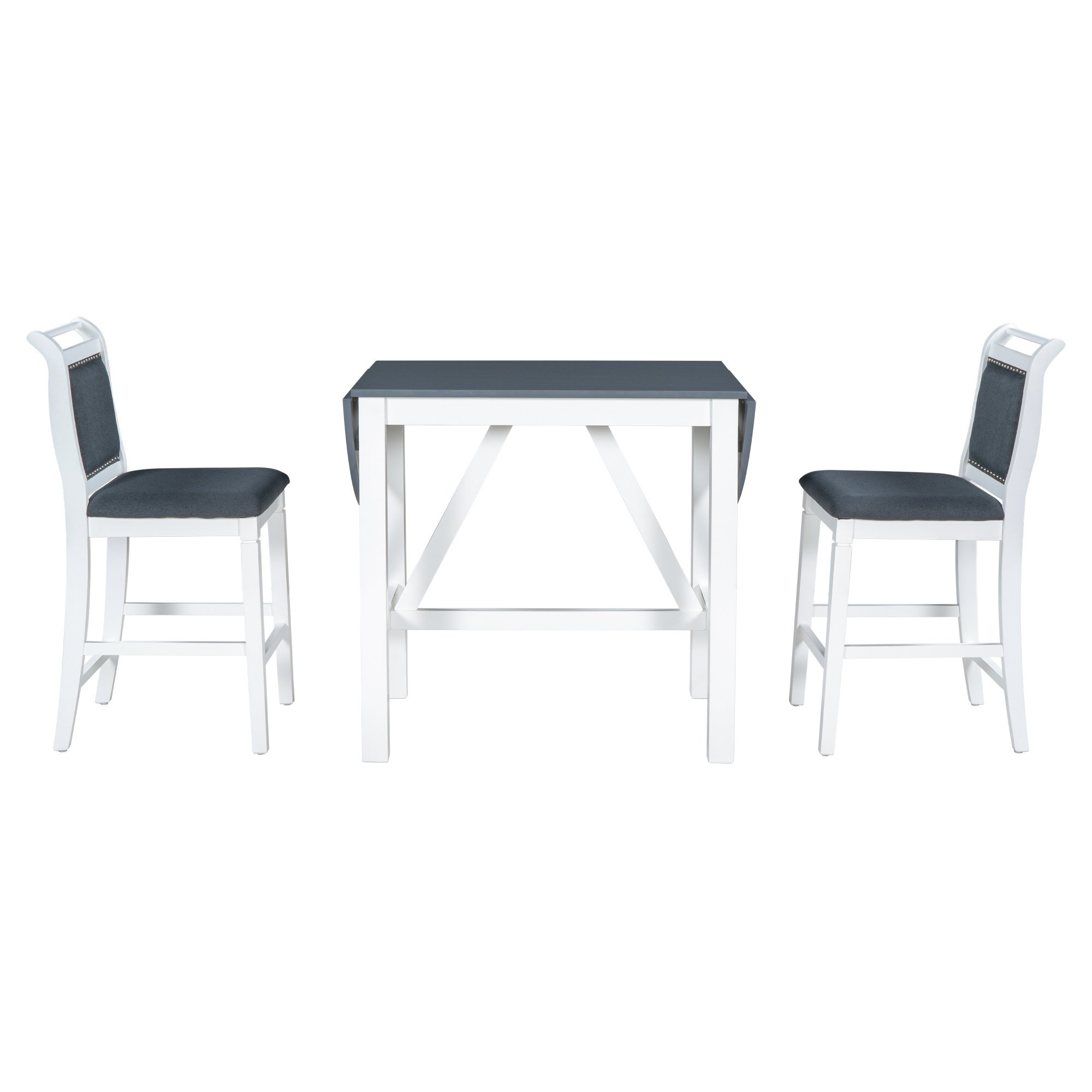 Home > TOPMAX 3-Piece Wood Counter Height Drop Leaf Dining Table Set with 2 Upholstered Dining Chairs for Small Place, White+Gray